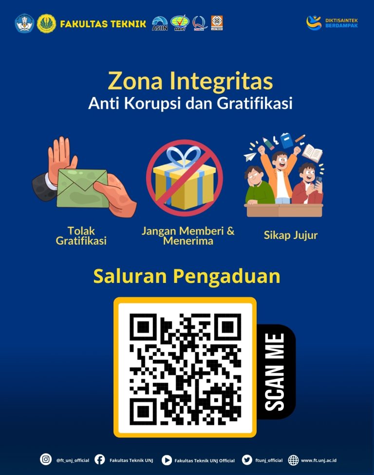 Jika Anda melihat atau mengetahui dugaan penyimpangan perilaku/penyalahgunaan wewenang atau permasalahan lain yang dilakukan pegawai di lingkungan Fakultas Teknik UNJ